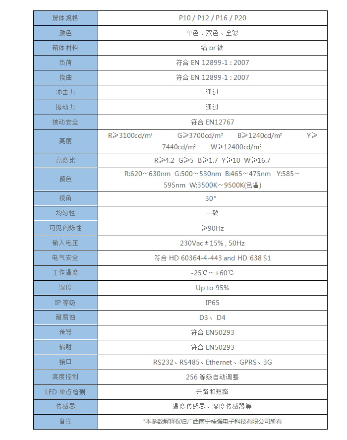 | 備注 | *本參數解釋權歸廣西南寧桂強電子科技有限公司所有 |