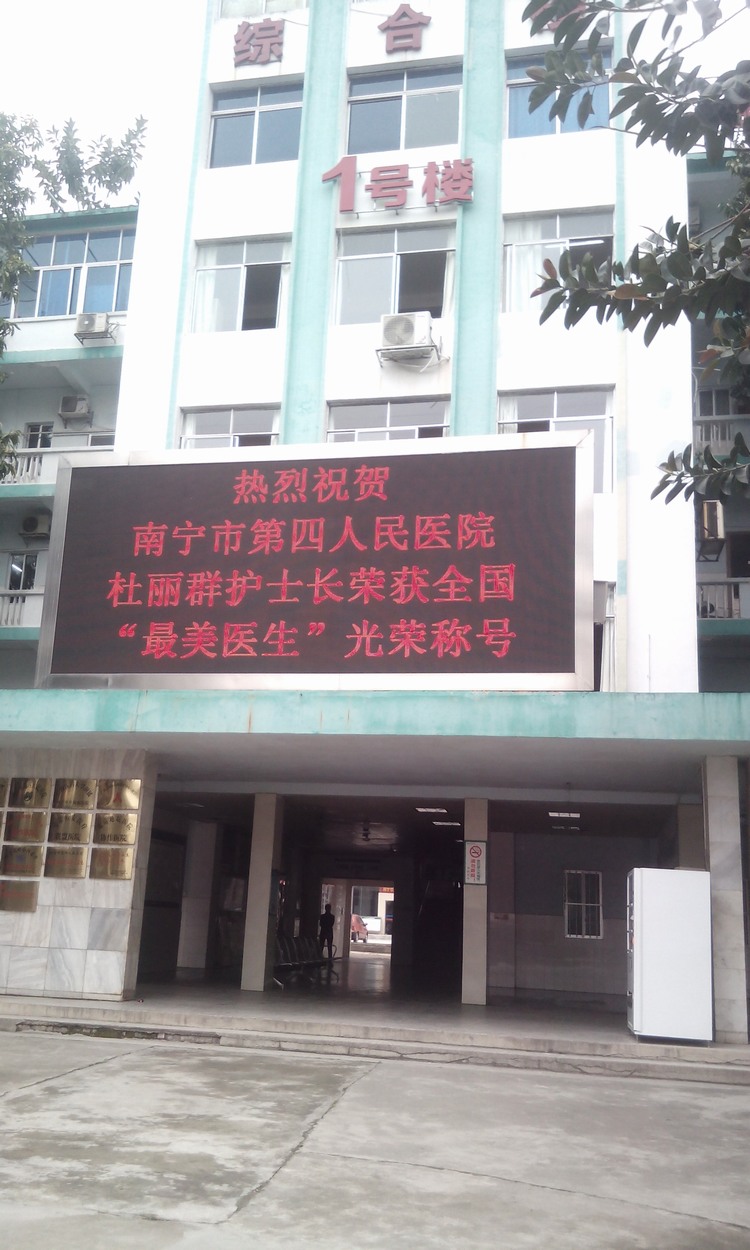 2、案例名稱:項目名稱命名:南寧市第四人民醫院戶外P10全彩LED顯示屏 20平方